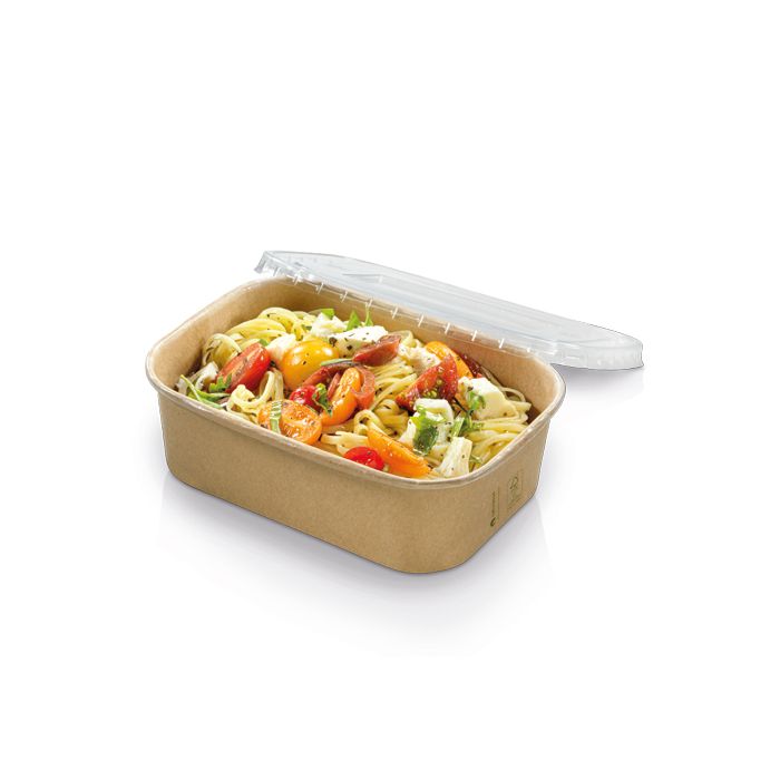 Deze kraft/PLA bak kan worden gebruikt voor het verpakken van diverse maaltijden en is ook zeer geschikt voor takeaway.