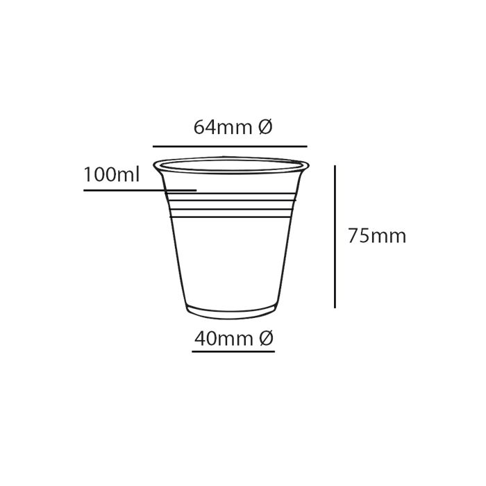 Drink beker PLA 100 ml, 64mm Ø, 0,9mm folie, 70 x 50 stuks