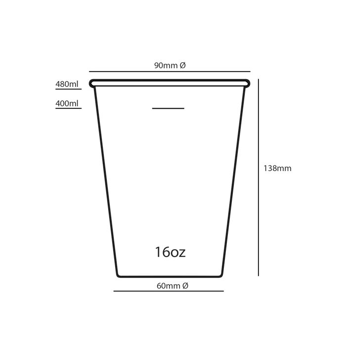 Milkshakebeker bamboe karton, PLA, 16oz, 480ml, 20 x 50 stuks