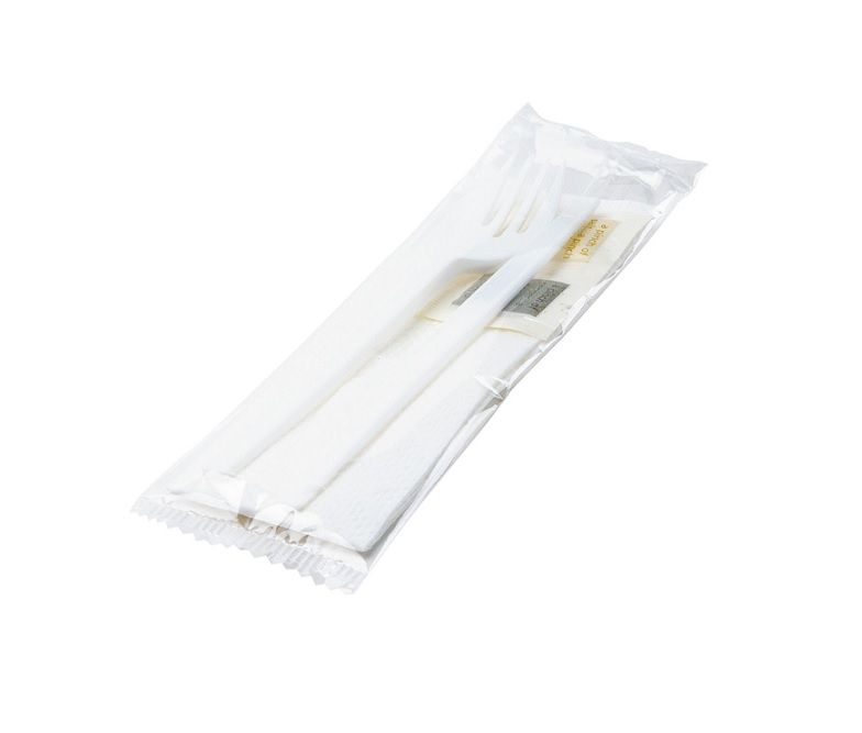 Besteksetje disposables, mes, vork, 16,5m lang, stevig servet 2 laags 29x25 (gevouwen 6x16cm), peper en zout, 250 stuks
