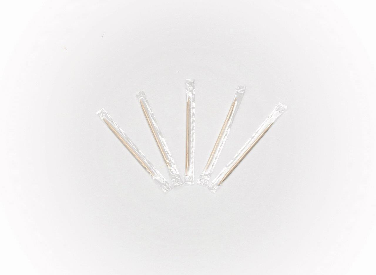 Tandenstoker hout, 2 punts, p/s verpakt (FSC) 70 mm, disp. ds . a 1000 stuks