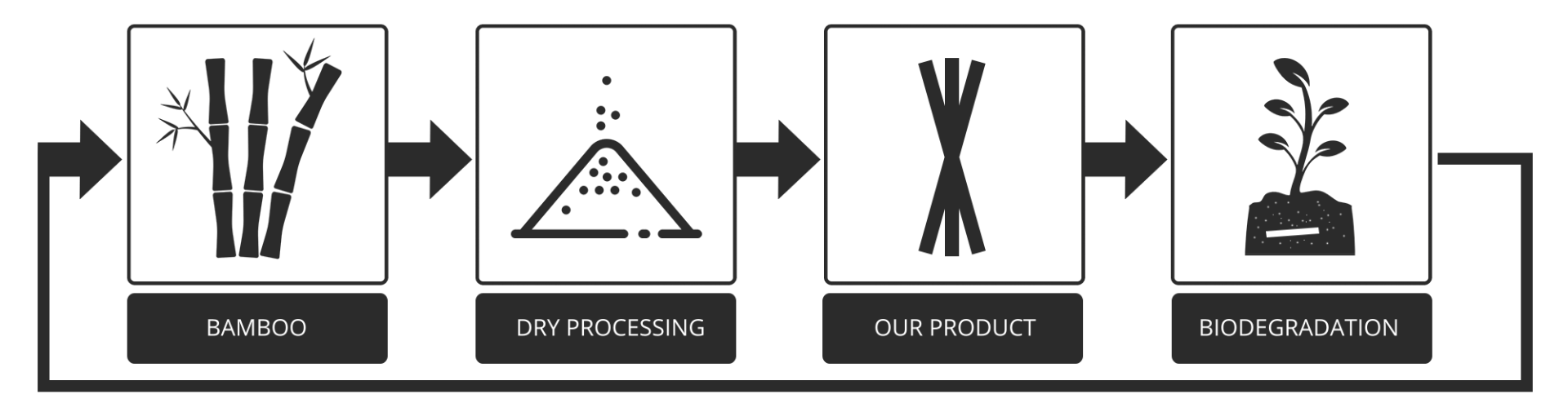 Onze bamboe vezel drinkrietjes zijn gemaakt van bamboe, het snelst groeiende gewas op aarde. Doordat de bamboe plant erg snel groeit is de grondstof zeer snel hernieuwbaar. Elk rietje begint met het verzamelen, versnipperen en vermalen van bamboe. Door een droge verwerkingstechniek is geen chemische stof nodig om de plant structuur te vernietigen. Het hele proces veroorzaakt daarnaast geen waterverontreiniging. De verwerkingstemperatuur wordt ook strikt gecontroleerd onder 200°C om een lage CO2-uitstoot te garanderen. De drinkrietjes worden gemaakt in Europa.