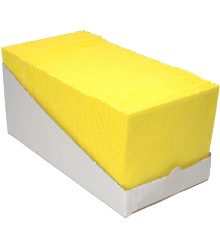 Werkdoekjes geel 38 x 40 cm, dispenserdoos, 50 stuks.