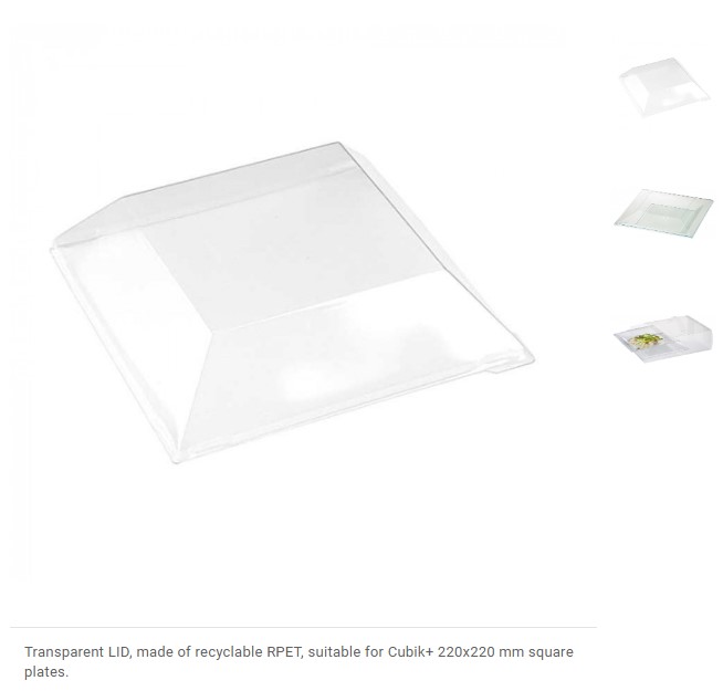 Transparent LID, made of recyclable RPET, suitable for Cubik+ 220x220 mm square plates.