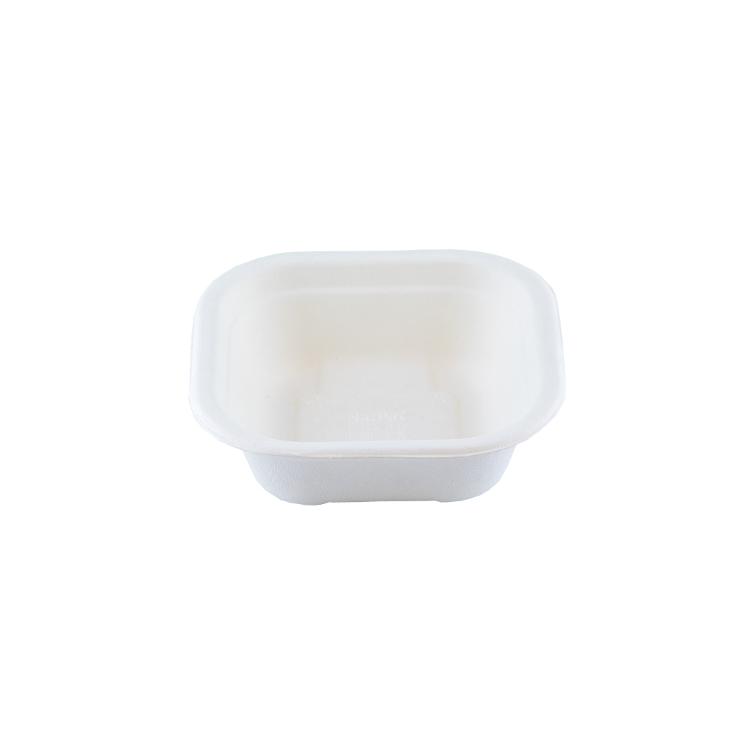 Suikerriet bakje vierkant 240ml kan worden gebruikt voor het serveren en verpakken van bijvoorbeeld bijgerechten zoals salade of rijst. Het suikerriet bakje biedt een milieuvriendelijk alternatief voor de plastic bakjes. Ook kunt u het bakje afsluiten met de losse suikerriet deksel.