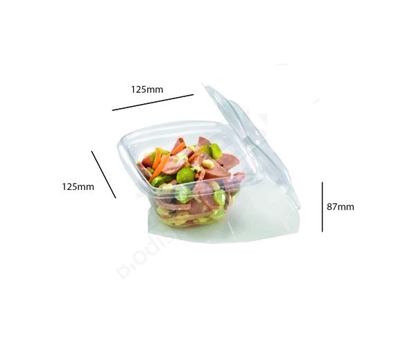 PLA saladebowl 480ml is ideaal voor het verpakken van bijvoorbeeld snackhapjes of een kleine salade. De PLA saladebowl is een milieuvriendelijk alternatief voor de plastic saladebakjes. Bij dit saladebakje wordt een PLA deksel meegeleverd, u hoeft deze dus niet los bij te bestellen.