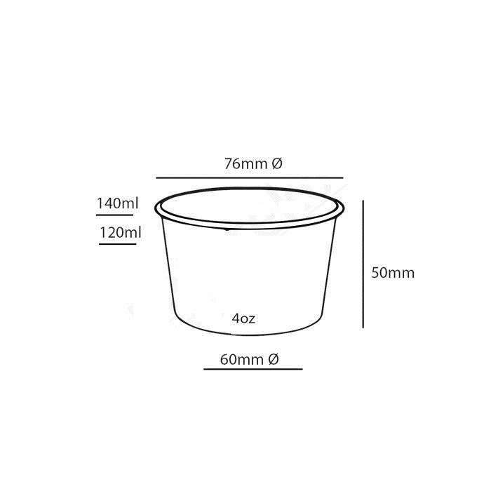 Container bamboe, PLA, 4oz,120ml, 75mm Ø x 50mm, 20 x 50 stuks