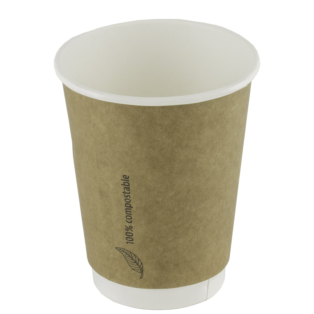 Koffiebeker dubbelwandig kraft, PLA, 12oz, 360 ml, 90 mm Ø, 20 x 25 stuks