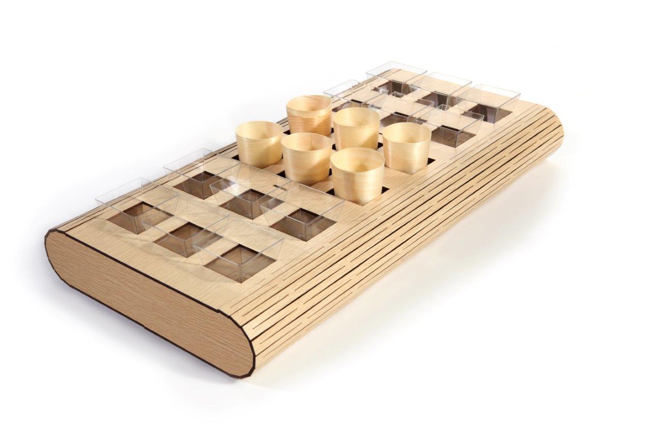 Serveerplateau hout 18 gaats 480 x 240 x H60 mm, 4 stuks