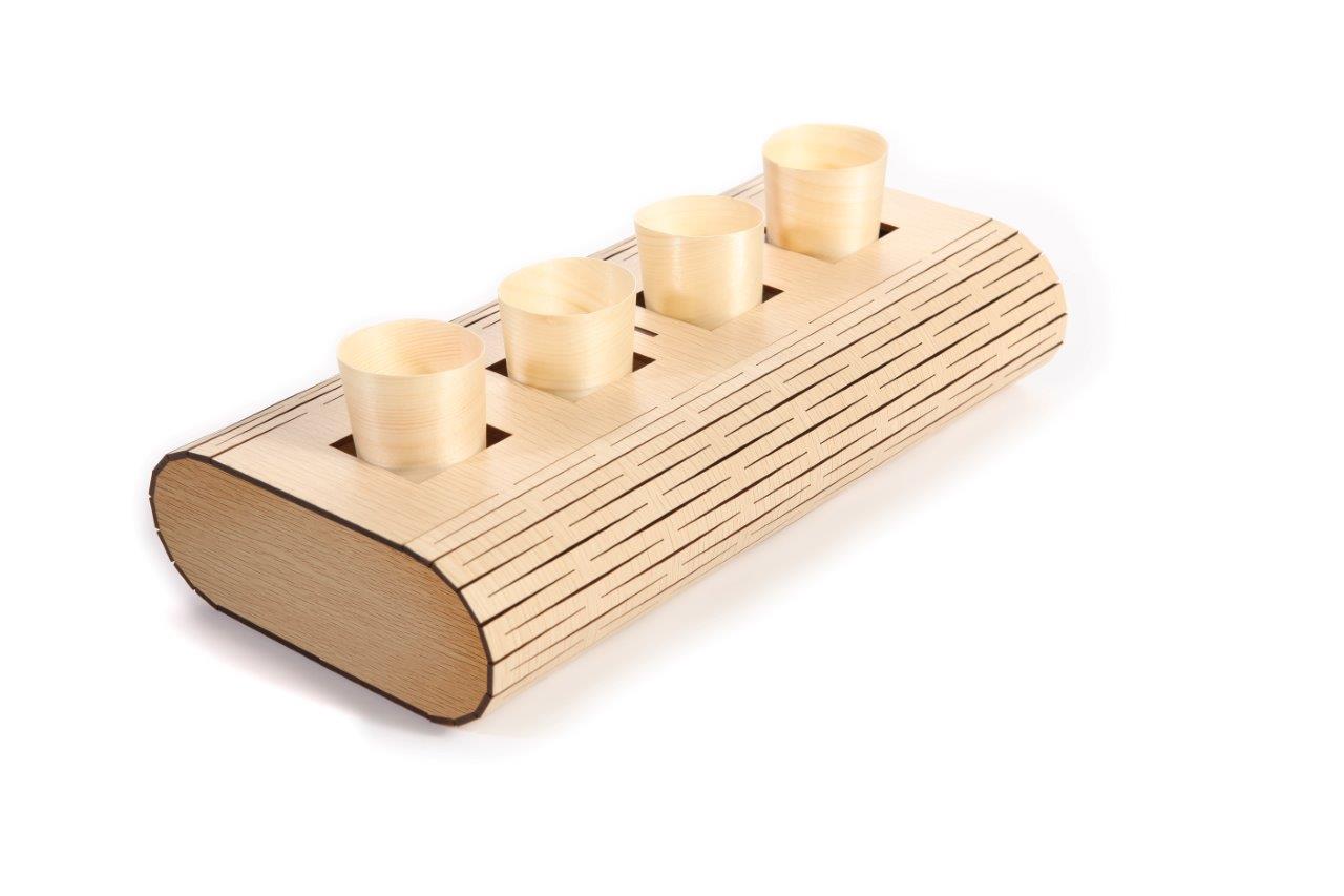 Serveerplateau hout 4 gaats 300 x 150 x H60 mm, 12 stuks