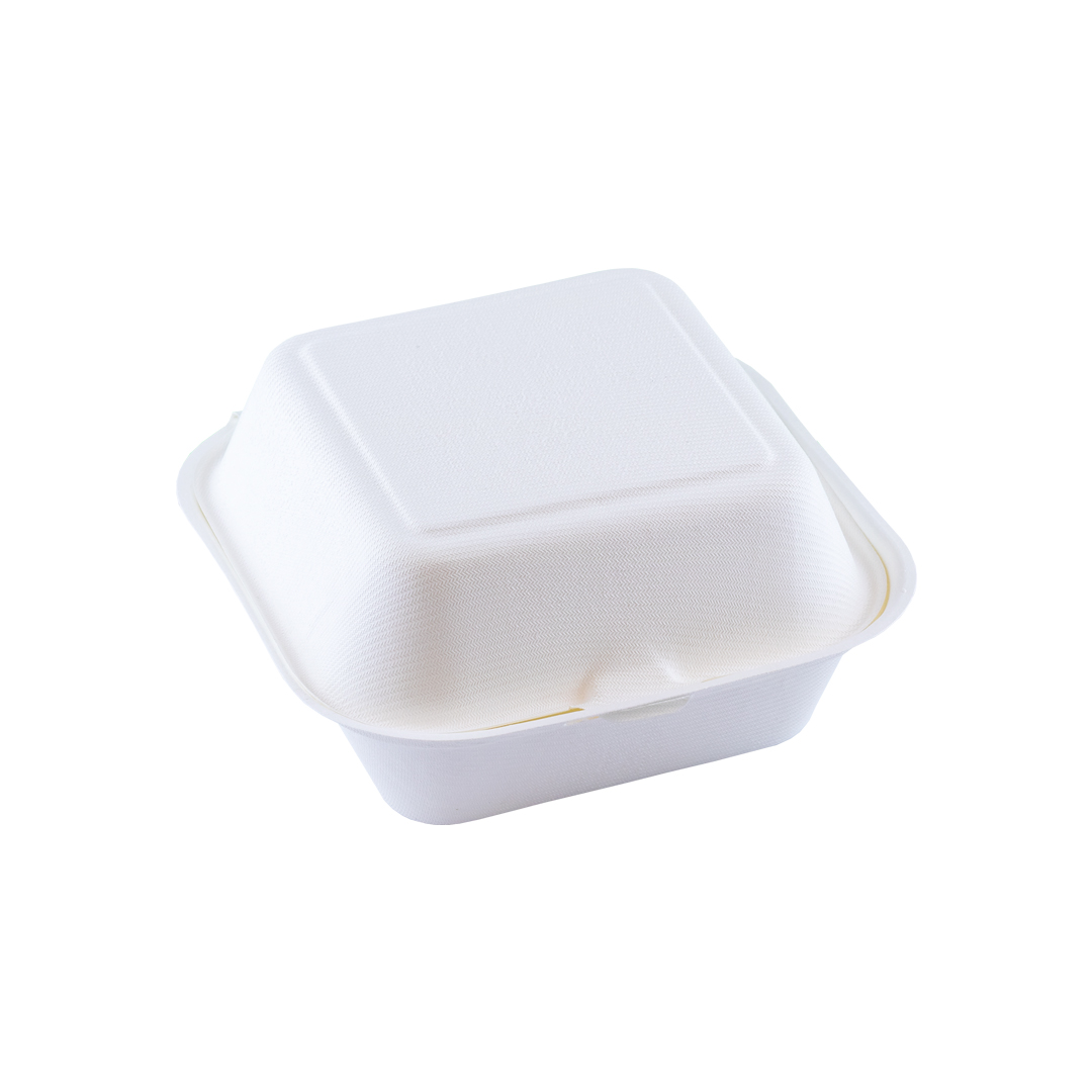 Suikerriet burgerbox kan uitstekend worden gebruikt voor het verpakken van een burger. Deze suikerriet burgerbox is een milieuvriendelijk alternatief voor de plastic hamburgerbakjes.