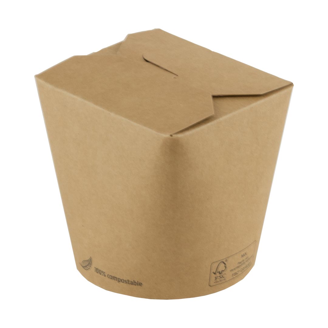Gebruik de FSC® kraft noodle box 720ml voor de uitgifte van een aziatisch gerecht zoals noodles of een rijstgerecht. De FSC® kartonnen noodle box is gemaakt van kraft karton en is voorzien van een biologisch afbreekbare PLA (maiszetmeel) coating wat zorgt voor vocht- en vetbestendigheid. Met deze FSC® noodle box geef je jouw lekkernijen de trendy streetfood look op bijvoorbeeld street food festivals of events.