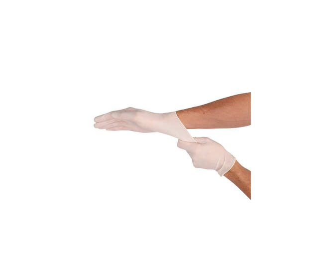 Handschoenen latex poedervrij X-Large wit, lengte van 240 mm, doos 100 stuks.