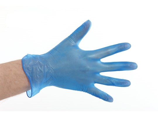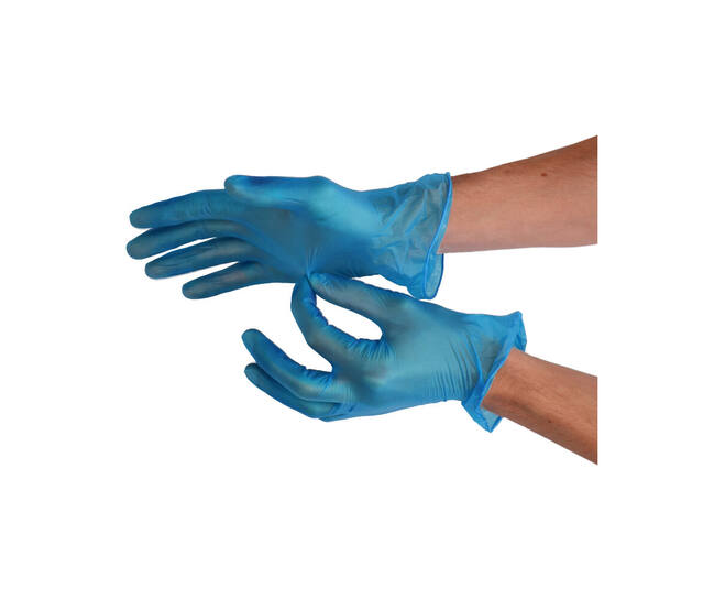 Handschoenen vinyl gepoederd Large blauw, lengte van 240 mm, doos 100 stuks.