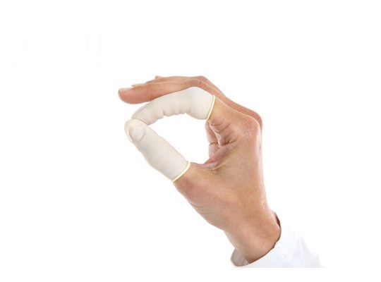 Vinger-tops (vinger condooms) latex poedervrij medium wit, zak 100 stuks.
