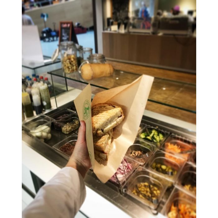 Gebruik dit stevige vetvrij papier voorzien van MaterBi coating voor het verpakken van bijvoorbeeld hamburgers, broodjes, wraps en meer. Het vetvrije papier is voorzien van een logo met duurzaam karakter en zit verpakt in een handige dispenserdoos.