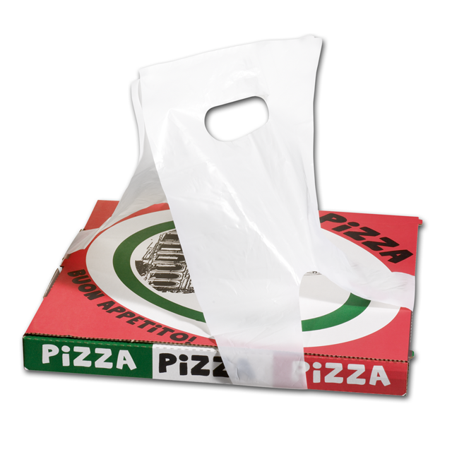 Draagtas, pizza -of gebaks dozen, wit, 35 my, hdpe, doos 1000 stuks.