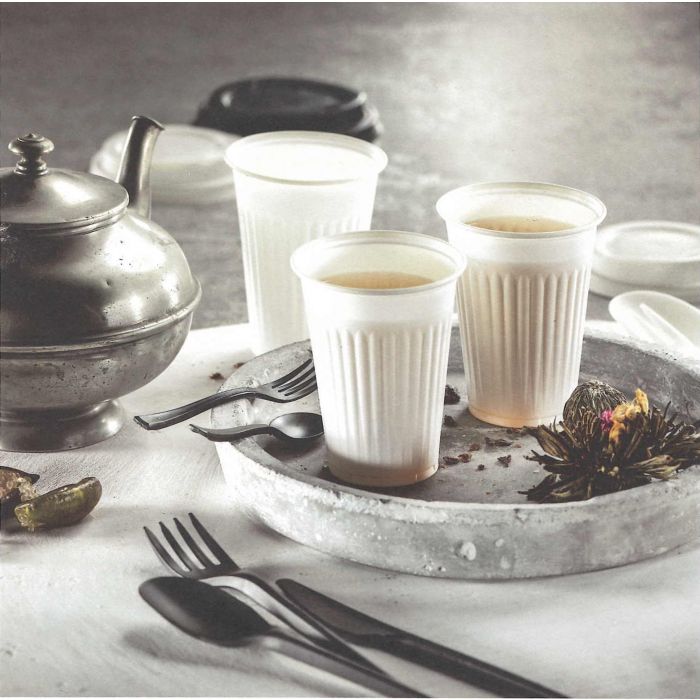 De grondstof voor onze automaatbekers is PLA (polymelkzuur). Het PLA is afkomstig uit natuurlijke grondstoffen die niet geschikt zijn voor menselijke consumptie zoals suikerriet en suikerbiet afval. Door middel van kristallisatie wordt PLA geconverteerd in CPLA (crystallised polylactic acid). Wanneer de grondstof kristalliseert wordt de kleur ondoorzichtig en het materiaal zeer stevig en hittebestendig tot 85°C. Automaatbekers van CPLA zijn het milieuvriendelijke alternatief voor vendingbekers van conventionele plastics zoals PS (polystyreen).