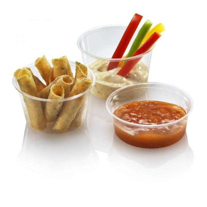 PLA bakje 60ml is ideaal te gebruiken als sausbakje voor het serveren van koude sauzen zoals mayonaise en ketchup. Met de bijbehorende deksel kan het bakje worden afgesloten.