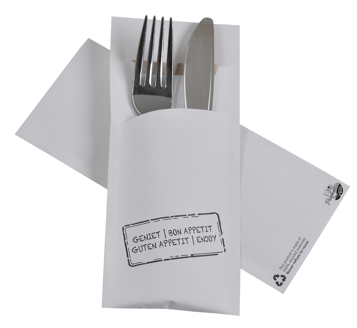 Dit bestekzakje is in zijn geheel geproduceerd uit gerecyclede materialen!
