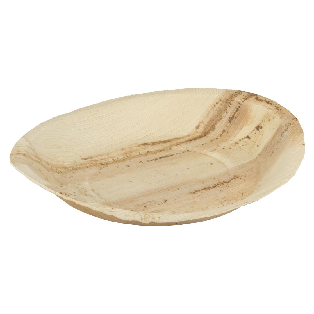 Palmblad bord 24cm ø kan uitstekend worden gebruikt als bord voor hoofdgerechten. Dit palmblad bord heeft een natuurlijke uitstraling en biedt een milieuvriendelijk alternatief voor plastic borden. De borden zijn goed te combineren met ons houten wegwerpbestek op bijvoorbeeld een barbeque of feestje.