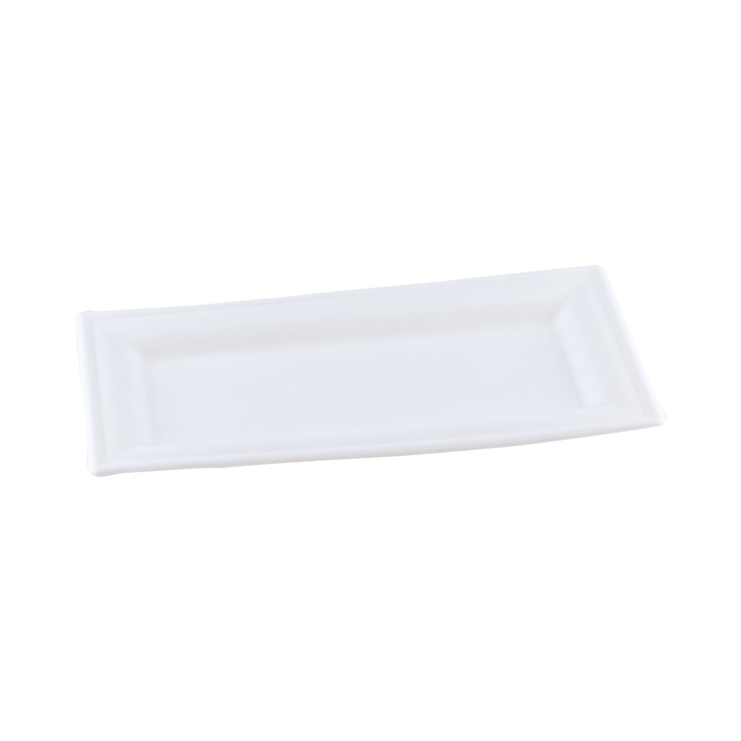Suikerriet bord "Karo" 260x130x15mm kan worden gebruikt als amusebord voor de presentatie van uw amuses en voorgerechten of tapas. Bovendien biedt het suikerriet bord een milieuvriendelijk alternatief voor plastic borden.