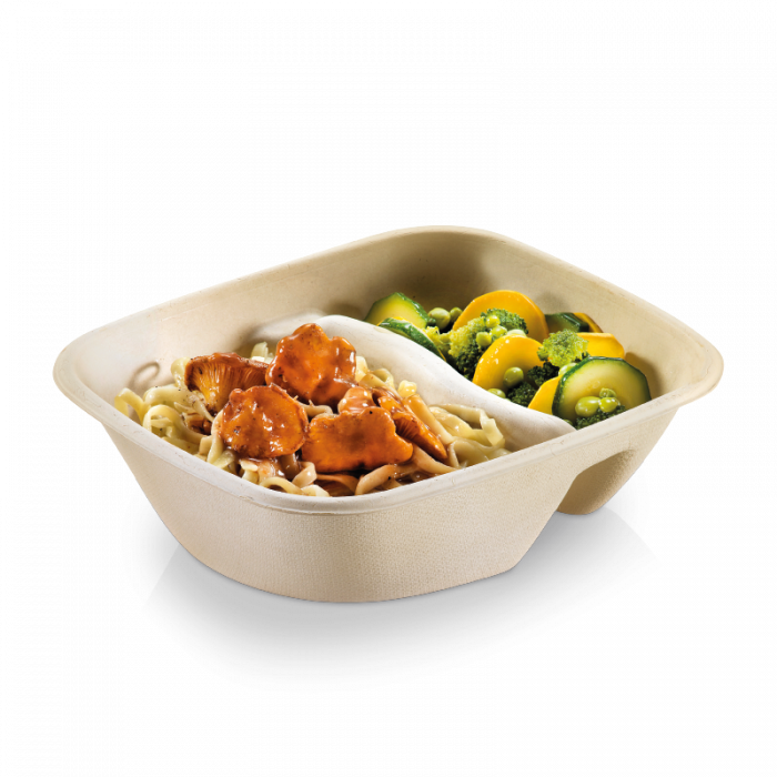 Bowl suikerriet rechthoek 780ml, 19,5x17x5cm 2-vaks, 4 x 100 stuks