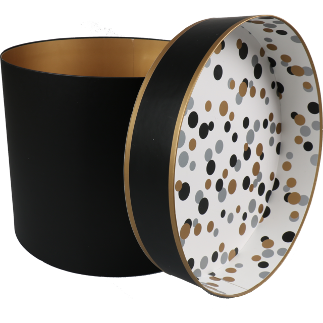 Geschenkdoos, Confetti, karton, 20cm, Ø25cm, zwart/goud, 1 stuks