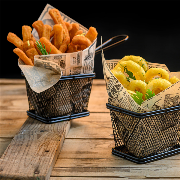 Dit papieren hamburgerzakje Dönerzakje snackzakje is ideaal voor de uitgifte van bijvoorbeeld een hamburger of broodje kebab, enorm populair bij foodtruck festivals en evenementen. De krant opdruk geeft een trendy uitstraling.