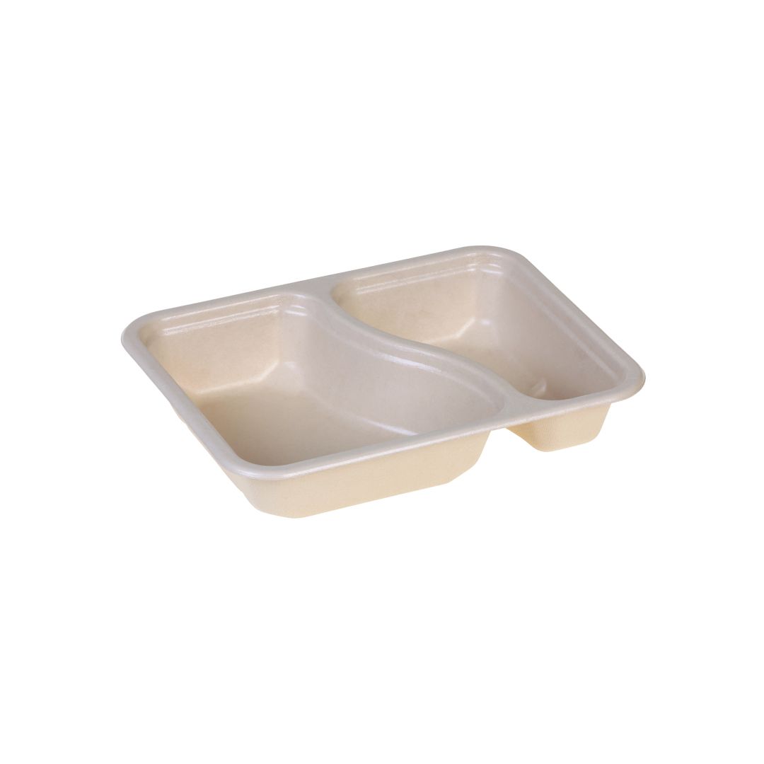 Suikerriet menutray 2-vaks kan worden gebruikt voor het verpakken van een complete maaltijd met verschillende ingredienten, gescheiden d.m.v. de 2-vaks verdeling. Deze suikerriet bak is voorzien van een BIO-laminaat. Deze unieke duurzame coating is industrieel composteerbaar en zorgt voor volledige vet- en vochtbestendigheid. Hierdoor trekt er geen vocht in de verpakking en kunt u deze voor langere tijd in de koeling bewaren. De suikerriet menutray biedt een milieuvriendelijk alternatief voor reguliere plastic bakken van PP of CPET. U kunt deze suikerriet maaltijdbak afsluiten met een deksel of voorzien van folie met behulp van een topsealmachine.