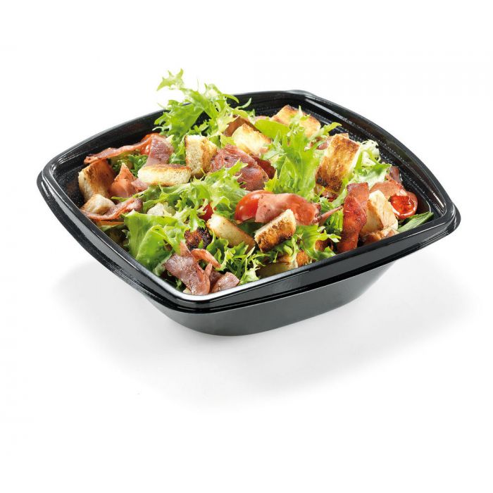Saladebakje PLA + deksel zwart/transparant 720ml, 192x192x65mm, 6 x 50 stuks