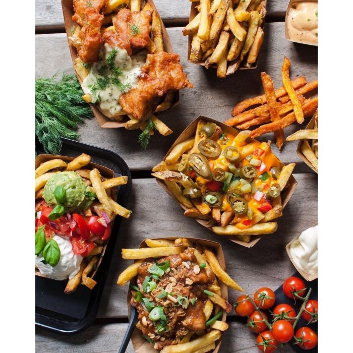 Gebruik het FSC® kraft snackbakje A9 voor het uitgeven van een middel maat friet of verschillende snacks. Het FSC® kartonnen snackbakje is gemaakt van kraft karton en is voorzien van een biologisch afbreekbare PLA (maiszetmeel) coating wat zorgt voor vocht en vetbestendigheid. Met dit FSC® kraft kartonnen bakje geef je jouw lekkernijen de trendy streetfood look.