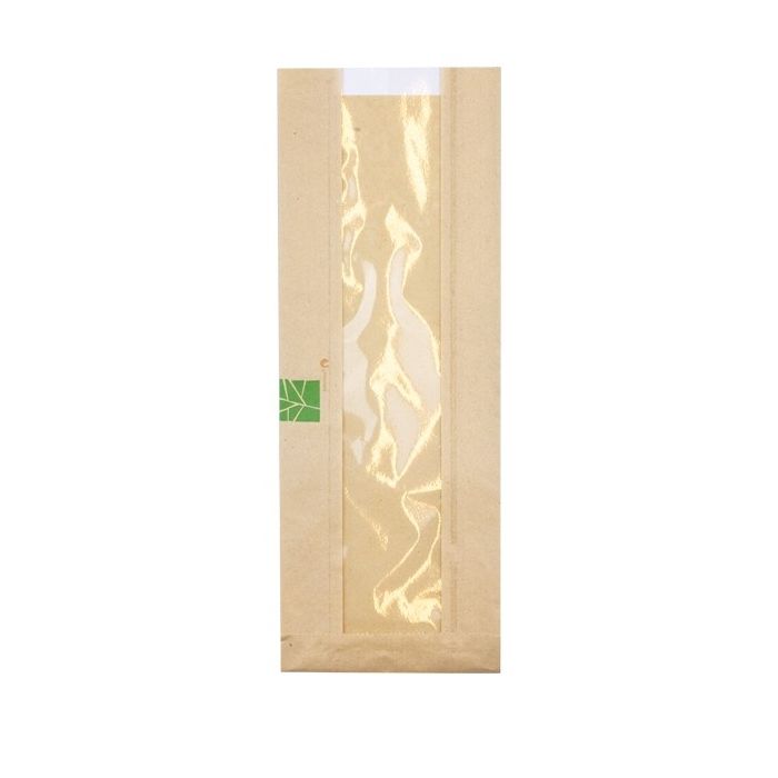 Deze PaperWise® vensterzak is voorzien van een centraal venster gemaakt van PLA (maiszetmeel) en heeft een zij-vouw van 2x3cm. Door het venster komt de presentatie van uw vers belegde stokbrood uitstekend tot zijn recht.