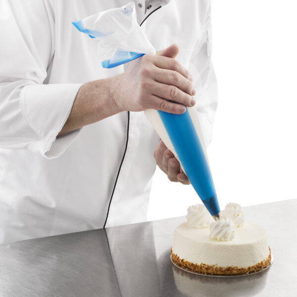 Doordat de HACCP-wetgeving steeds strengere richtlijnen oplegt is het niet verwonderlijk dat wegwerpspuitzakken de plaats innemen van de traditionele linnen en nylon spuitzakken. Deze spuitzakken voldoen aan alle internationale richtijnen voor voedselveiligheid. Cool Bleu-spuitzakken zijn sterk, liggen vast in de hand en worden het meest gebruikt voor koude en luchtige vullingen.