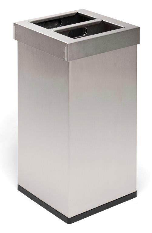 Design afvalbak van RVS of aluminium voor afvalscheiding met 2 aluminium binnenbakken (2x 52,5 ltr). Inclusief (basis) stickerset afvalscheiding. , VB 650040, L 360 b 360 h 765, mm