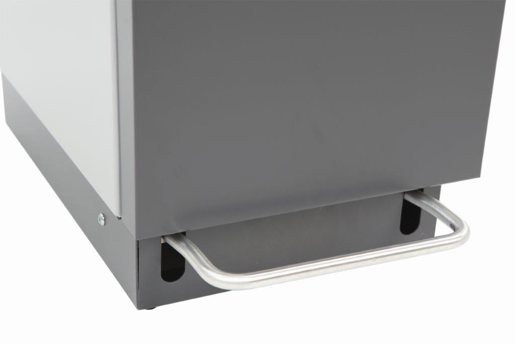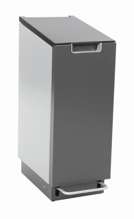 Brandveilige recycling module van hoogwaardig aluminium met stevig, breed pedaal conform HACCP-richtlijn. Het schuin aflopende deksel voorkomt dat er iets opgezet kan worden. Voorzien van dempingsysteem voor geruisloos sluitend deksel. De stevige deur en afvalzakhouder voorzien van railsysteem zorgen ervoor dat de afvalzak ARBO-verantwoord gewisseld kan worden. De twee wieltjes aan de achterzijde doen tevens dienst als muurafstandhouders. De Connector Bin kan separaat worden geplaatst of in serie door meerdere modules aan elkaar te koppelen via een koppelset (apart bestellen). Recycling set bestaande uit een gekleurde handgreep en naamplaat optioneel leverbaar om de verschillende afvalstromen kenbaar te maken. , VB 709502, L 512 b 303 h 816, mm