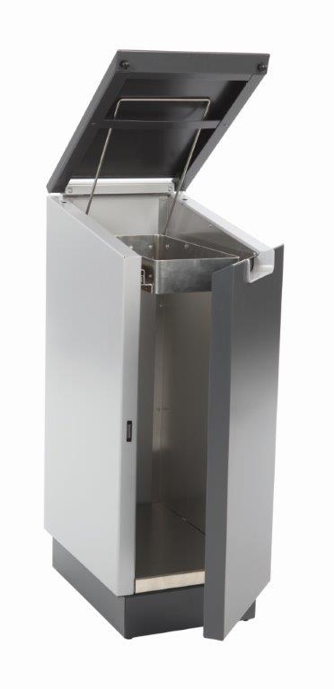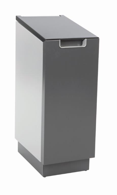 Brandveilige recycling module van hoogwaardig aluminium. Het schuin aflopende deksel voorkomt dat er iets opgezet kan worden. Voorzien van dempingsysteem voor het geruisloos sluiten van het deksel. De stevige deur en afvalzakhouder voorzien van railsysteem zorgen ervoor dat de afvalzak ARBO-verantwoord gewisseld kan worden. De twee wieltjes aan de achterzijde doen tevens dienst als muurafstandhouders. De Connector Bin kan separaat worden geplaatst of in serie door meerdere modules aan elkaar te koppelen via een koppelset (apart bestellen). Recycling set bestaande uit een gekleurde handgreep en naamplaat optioneel leverbaar om de verschillende afvalstromen kenbaar te maken. , VB 709496, L 452 b 303 h 816, mm