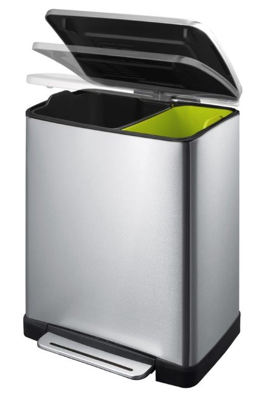 E-Cube recycling pedaalemmer 28+18 ltr, EKO , mat RVS, L 345 b 500 h 650, mm