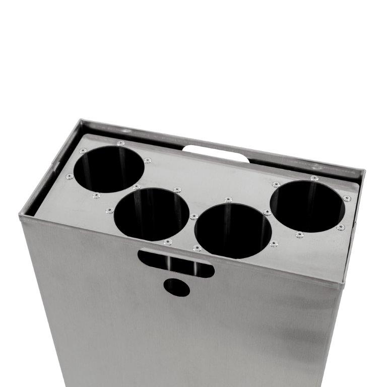 Halve binnenbak en inzet voor bekers met spijlen van hoogwaardig aluminium. Mooi afgewerkt zonder scherpe randen. De inzet is voorzien van 4 gaten met een diameter van 83 mm, gangbaar voor de meeste bekers. Door het efficiënte stapelsysteem passen er tot 3x meer bekers in. De binnenbak is voorzien van handgrepen die er tevens voor zorgen dat de afvalzak netjes op zijn plaats en uit het zicht blijft. Geschikt voor de Carro-Lift en Carro-Kick 110 liter. , VB 719792, L 335 b 160 h 720, mm
