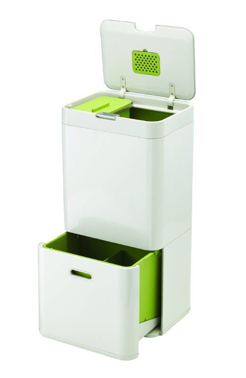 Afvalscheidingsunit van gepoedercoat staal met fingerprint proof RVS deksel met touch systeem. Groot compartiment van 36 liter met binnenbak en uitneembaar GFT-bakje (4 liter) met deksel en hengsel. De la met binnenbak heeft een capaciteit van 24 liter. Door het verwijderbare tussenschot is de la multifunctioneel te gebruiken voor het scheiden van een of meer afvalstromen. De la is volledig uitschuifbaar waardoor de afvalzak eenvoudig verwisseld kan worden. Met geïntegreerde houder voor geurfilter in het deksel. Custom-fit afvalzakken en geurfilters apart verkrijgbaar. Geschikt voor huishoudelijk gebruik. , VB 300017, L 300 b 400 h 798, mm