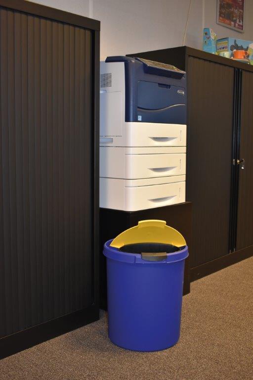 Ronde papierbak van kunststof, doorsnede boven 38 cm, onder 30 cm. , VB 201834, h 410 ø 375, mm