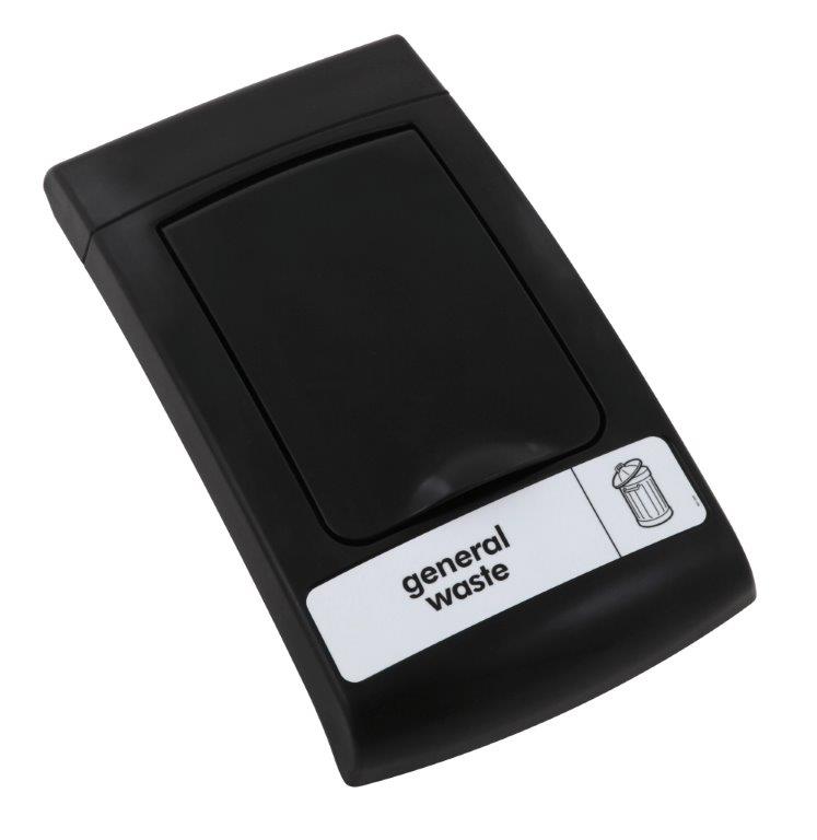 Lift deksel uit dubbelwandig rotatiegegoten kunststof (MDPE) met grote opening voor het verzamelen van algemeen afval. Geschikt voor zowel de Mini als Midi Envirobin. Het deksel houdt geurtjes binnen en verbergt het afval uit het zicht. , VB 063796, L 520 b 308 h 96, mm
