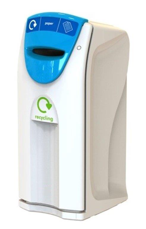 Grote capaciteit recyclingcontainer van hoogwaardige kwaliteit vervaardigd uit rotatiegegoten kunststof (MDPE). Voorzien van smalle gleuf-inwerpopening, afvalzakhouder en deur aan de voorzijde. Gemakkelijke toegang voor het legen en vervangen van de afvalzak. Geïntegreerde mogelijkheid voor ballast of vloermontage. , VB 063963, L 615 b 550 h 1220, mm