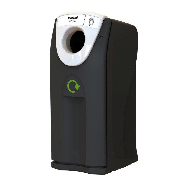 Grote capaciteit recyclingcontainer van hoogwaardige kwaliteit vervaardigd uit rotatiegegoten kunststof (MDPE). Voorzien van ronde inwerpopening, afvalzakhouder en deur aan de voorzijde. Gemakkelijke toegang voor het legen en vervangen van de afvalzak. Geïntegreerde mogelijkheid voor ballast of vloermontage. , VB 719402, L 615 b 550 h 1220, mm