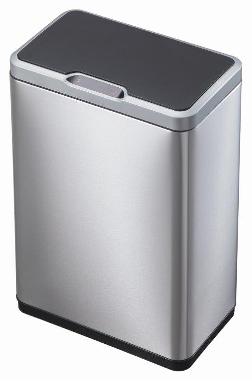 Stijlvolle afvalbak voor afvalscheiding van geborsteld RVS voorzien van fingerprint proof coating en 2 kunststof binnenemmers (2x 20 liter). Het sensormechanisme voorzien van touch switch zorgt ervoor dat de afvalbak zowel d.m.v. een sensor als via de touch knoppen te openen en sluiten is. Hygiënisch in gebruik. Het kunststof deksel sluit geruisloos. Door het afneembare deksel is de afvalzak eenvoudig te wisselen. Werkt op 6 AA batterijen (niet inbegrepen). , VB 927840, L 460 b 270 h 655, mm