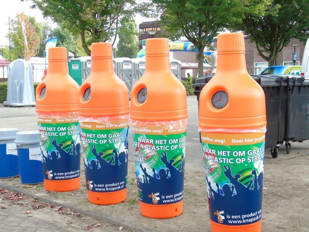 Grote afvalbak van hoogwaardig kunststof voor het inzamelen van (pet)flesjes. Met zijn opvallende verschijning moedigt de PETman fles aan tot het scheiden van flesjes. Bijpassende afvalzakken houden de binnenkant schoon. Wikkel apart leverbaar (en vanaf 5 stuks te personaliseren). Een ideale oplossing voor evenementen, horeca, festivals en sportverenigingen. In geval van buitengebruik is het raadzaam de PETman te verzwaren. Leverbaar in verschillende (standaard) kleuren. Overige kleuren op aanvraag. , VB 716487 h 1800 ø 580, mm