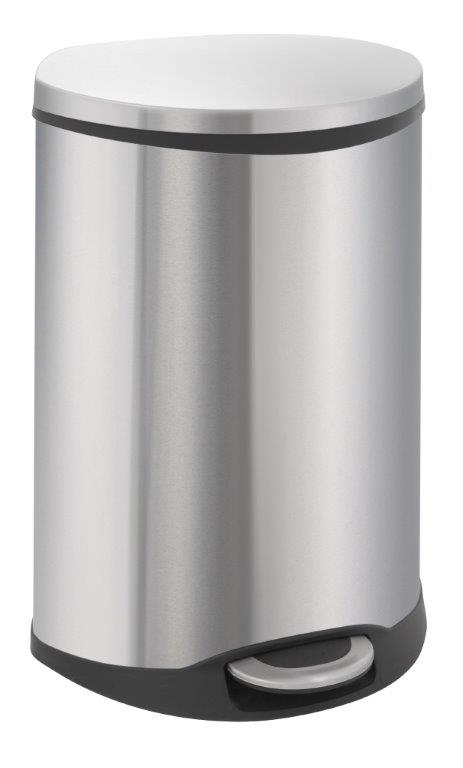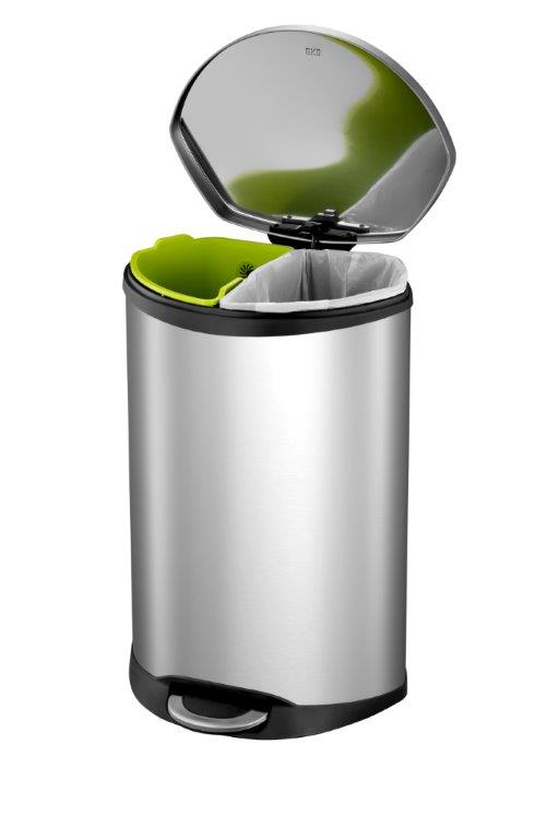 Opvallende schelpvormige pedaalemmer met 2 kunststof binnenemmers (2x 22 ltr) voor afvalscheiding. Voorzien van gedempt deksel en Fingerprint Proof coating. , VB 921844, L 406 b 450 h 690, mm