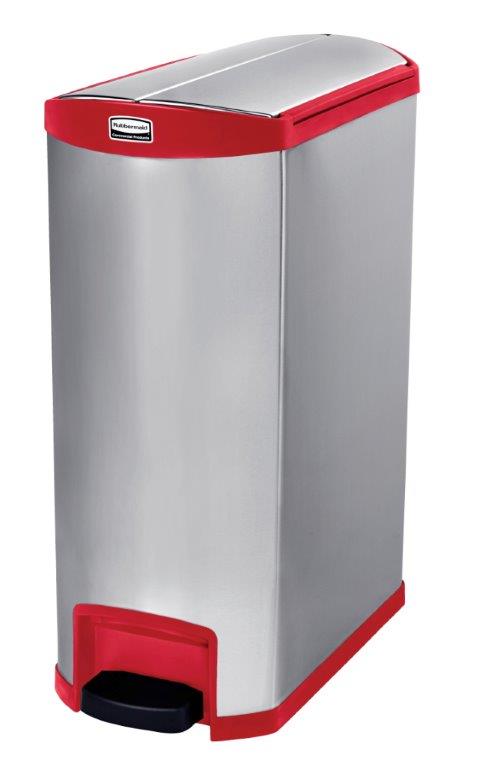 Slim Jim Step On container End Step RVS 90 ltr, Rubbermaid , mat RVS, rood, L 759 b 399 h 917, mm