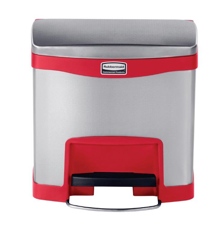 Slim Jim Step On container Front Step RVS 15 ltr, Rubbermaid , mat RVS, rood, L 444 b 354 h 482, mm