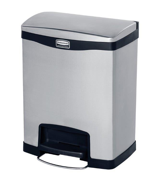 Slim Jim Step On container Front Step RVS 30 ltr, Rubbermaid , mat RVS, zwart, L 479 b 376 h 634, mm
